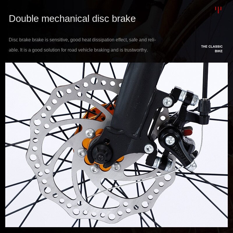 Brake Type: Front and rear mechanical disc brakes