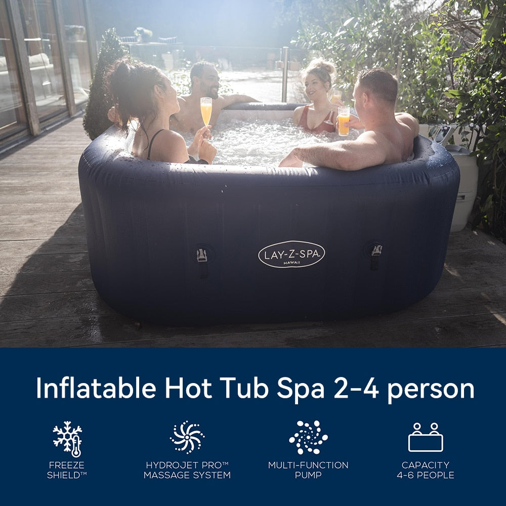 Boasting EMC/LVD/CB/ROHS/EN17125 certification and a filled weight of 879KG (1938lbs), this outdoor inflatable hot tub spa is the perfect addition to any backyard.