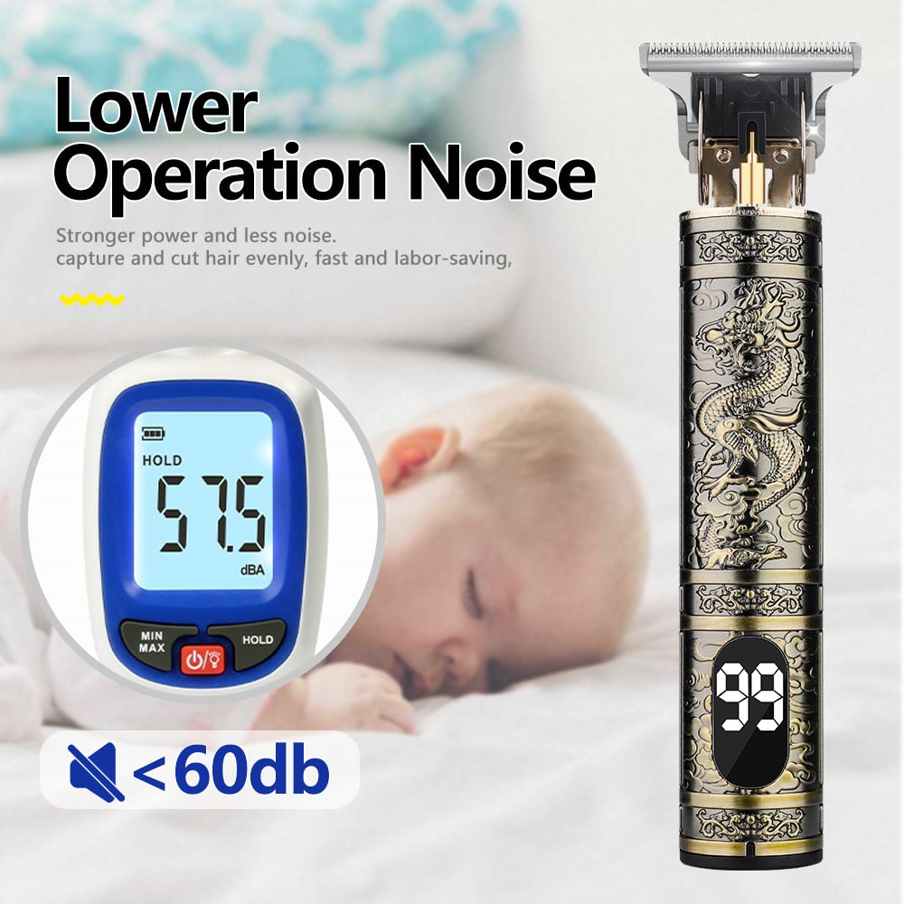 The Electric Hair Cutting Machine Vintage T9 Clipper is the perfect addition to any professional barber's tool kit. This rechargeable, high-performance trimmer has everything you need to keep your clients looking their best. The clipper is designed with an innovative cutting system that delivers fast and accurate results, providing smooth and even cuts every time. It features adjustable taper technology for easy styling and gives you the flexibility to adjust the length of your cut with just a flick of a switch. Plus, the machine is equipped with a powerful motor that runs quietly - making it suitable for use in close proximity to customers. So whether you're creating classic fades or modern razor sharp lines, this electric hair clipper ensures top quality results each and every time!