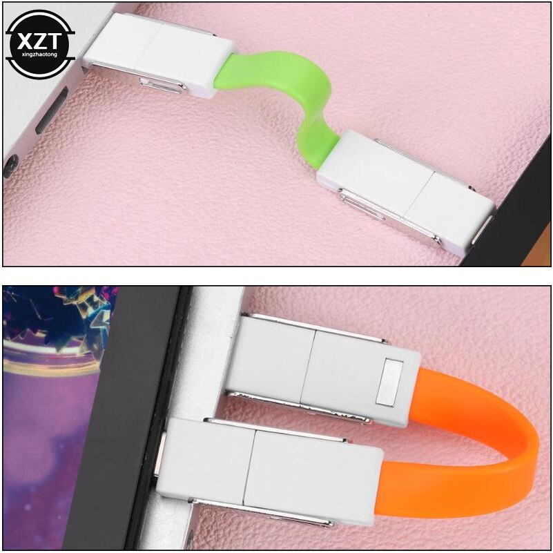 This Mini Keychain 4-in-1 USB Fast Smart Universal Charging Data Cable is designed to be compatible with Lightning, Micro, Type-C, and USB devices.