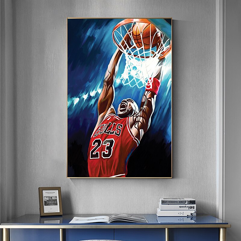 Featuring a digitally printed Basketball Star mural on canvas, this modern artwork is perfect for your home or office.