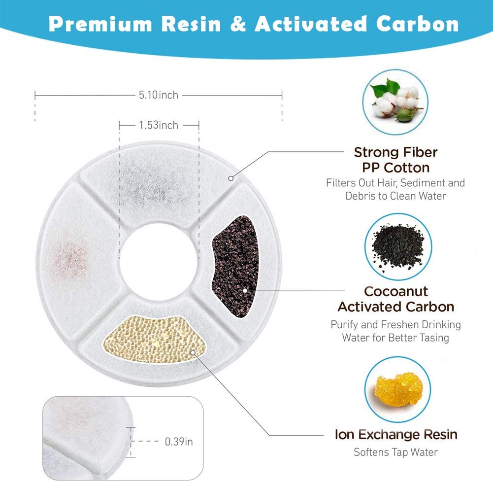 12Pcs Cat water Fountain Activated Carbon Replacement Filter for 1.6L Automatic Pet Cat Water Fountain Dog Water Dispenser